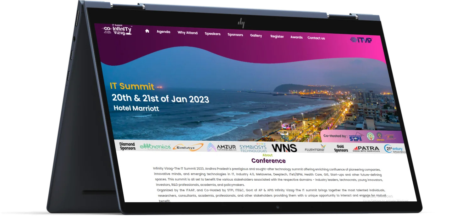 Infinity Vizag-2023 IT Summit, Andhra Pradesh's flagship technology summit offers enriching confluence of Start-ups, pioneering companies, SMEs and MNCs in emerging technologies in IT, Industry 4.0, Artificial Intelligence, Analytics, ITeS / BPM, Health Care and other future-defining spaces.